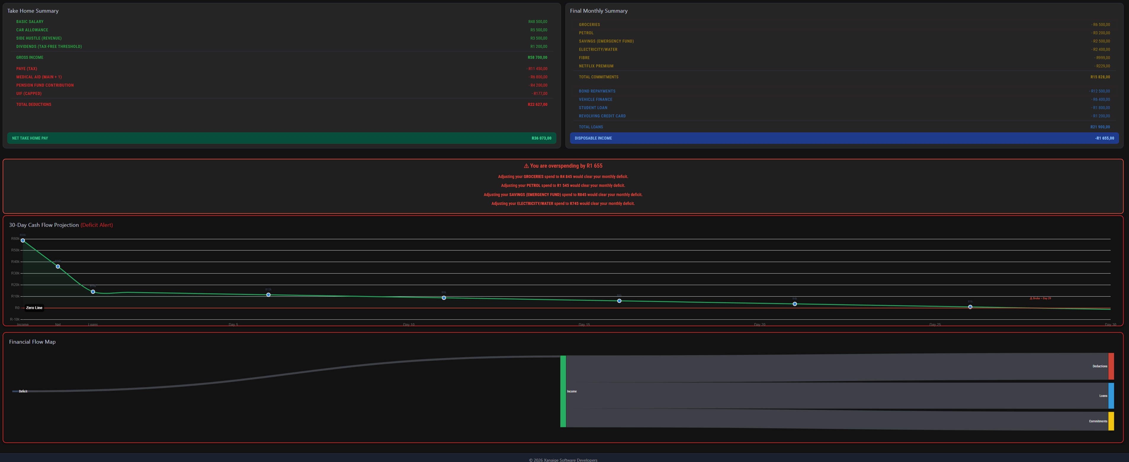 Instantly see whatβs actually left in your pocket after all deductions and obligations are met.